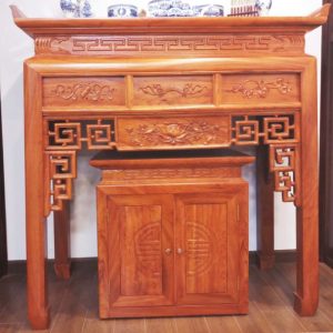 Bàn thờ gỗ hương là một trong những mẫu bàn thờ được ưa chuộng nhờ vẻ đẹp sang trọng và hương thơm tự nhiên đặc trưng, gỗ hương thuộc nhóm gỗ quý có độ cứng cao và khả năng chịu lực tốt, màu sắc của gỗ hương thường là nâu đỏ hoặc đỏ sẫm tạo cảm giác ấm áp và linh thiêng.