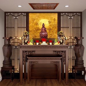 Màu sắc trầm của gỗ giúp không gian thờ trở nên tĩnh lặng và linh thiêng hơn. Qua thời gian, bàn thờ gỗ gụ không hề xuống cấp mà còn tăng thêm giá trị thẩm mỹ. Đây là loại bàn thờ thể hiện sự chu đáo và lòng thành kính của gia chủ đối với tổ tiên. Gỗ gụ cũng được xem là chất liệu mang ý nghĩa phong thủy tốt, tượng trưng cho sự bền vững và trường tồn. Việc sở hữu một chiếc bàn thờ gỗ gụ còn thể hiện gu thẩm mỹ và đẳng cấp của gia đình. Dù trải qua nhiều năm sử dụng, bàn thờ vẫn giữ được độ chắc chắn và vẻ đẹp cổ kính. Chính vì những ưu điểm đó, bàn thờ gỗ gụ luôn được đánh giá cao và được truyền từ đời này sang đời khác như một giá trị tinh thần quý báu.