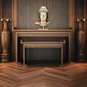 Bàn thờ gỗ gụ thường được chế tác từ những khối gỗ chắc chắn, có độ bền cao, ít cong vênh hay nứt nẻ. Chất gỗ nặng và đầm giúp bàn thờ luôn vững chãi, thể hiện sự tôn nghiêm cần có. Thiết kế bàn thờ gỗ gụ thường mang phong cách truyền thống với các hoa văn chạm khắc tinh xảo.