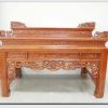 Phần cổ bàn thờ: hay phần yếm của bàn thờ, đây là phần tiếp nối giữa phía trên chân bàn thờ. Phần yếm được chạm trổ các nét hình Ngũ Phúc, Tứ Linh, Tứ Quý,… Có một số mẫu được cải tiến thêm ngăn kéo hoặc giá đỡ tăng thêm công năng sử dụng cho bàn thờ.