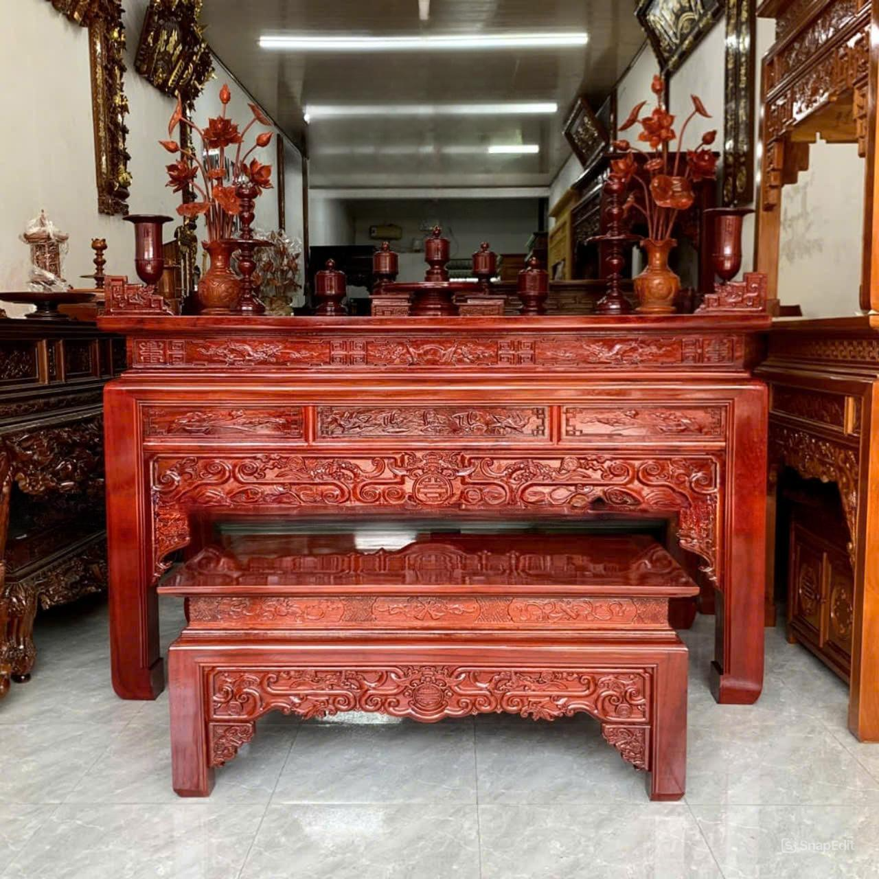 Bàn thờ chung cư 3 món 1m07 gỗ gụ lào BTĐ22