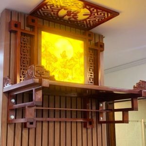 Bàn thờ treo tường có kích thước vô cùng nhỏ gọn, kết hợp ngăn phụ tương đối rộng rãi và tiện lợi, đây là sự lựa chọn hàng đầu dành cho những căn hộ chung cư có diện tích nhỏ hẹp.