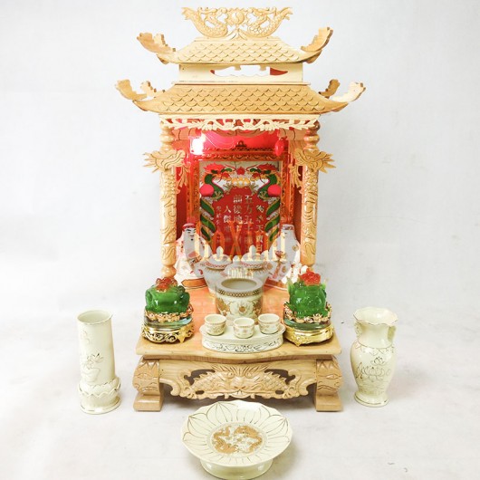 Đặt mua Khám thờ phát tài 48cm mái chùa gỗ sồi nga BTĐ168