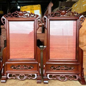 Chất liệu: Ưu tiên các loại khung làm từ gỗ tự nhiên như gỗ hương, gỗ gụ, gỗ mít,… Đây đều là chất liệu bền chắc, có vân gỗ đẹp. Gỗ tự nhiên cũng được xem là chất liệu mang năng lượng tốt, rất phù hợp cho khu vực thờ tự.